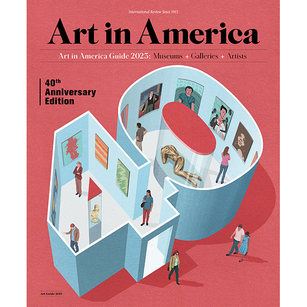 Our 40th anniversary edition, published in 2023, marks our final edition of the print publication. We’re taking the momentum of this historic milestone to evolve our digital platform. Looking ahead, the Art in America Guide will be a more interactive resource for the art industry and our engaged community of museums, galleries, art schools, nonprofits, and art dealers that have been part of the Art in America Guide for decades. More on that soon!