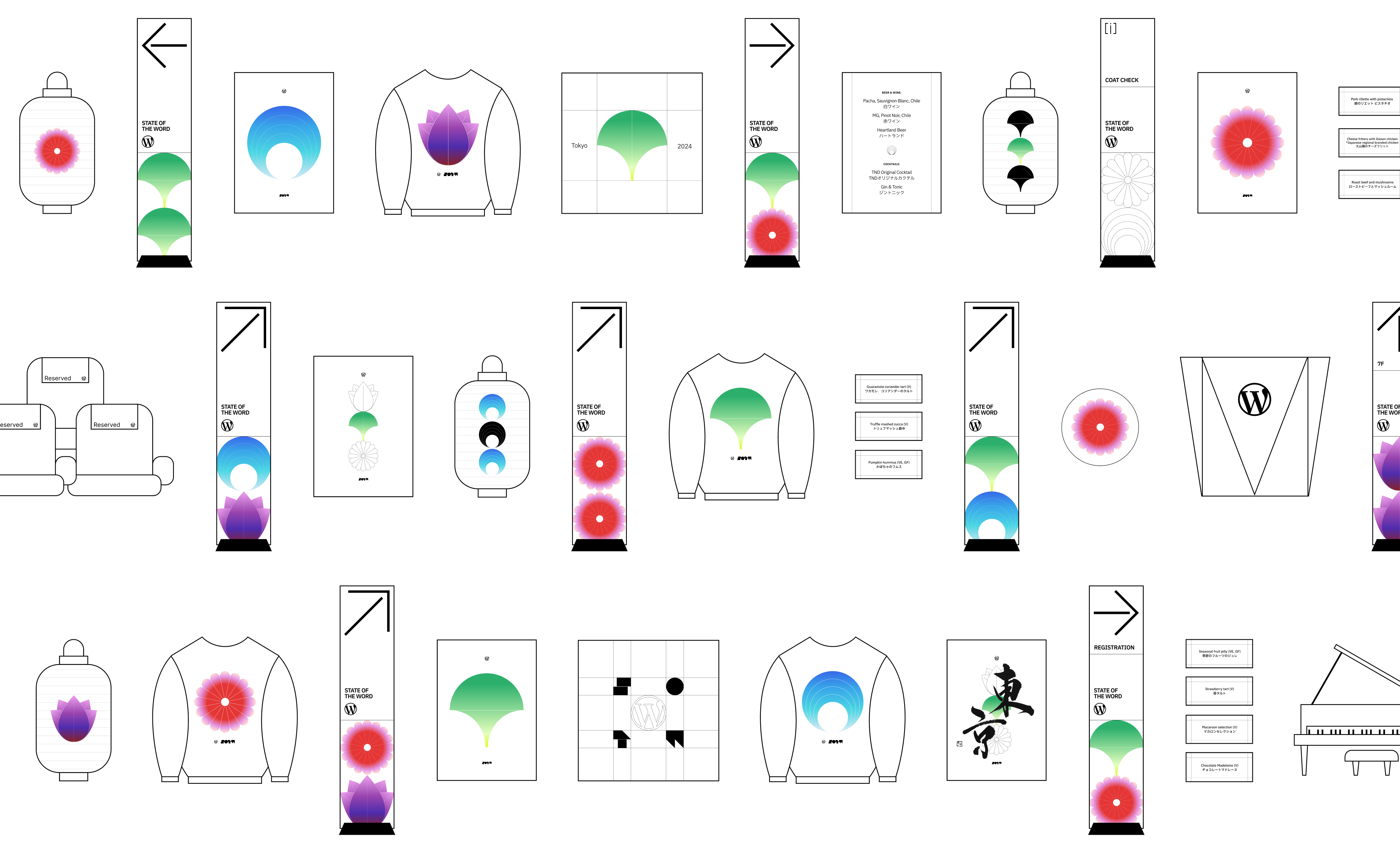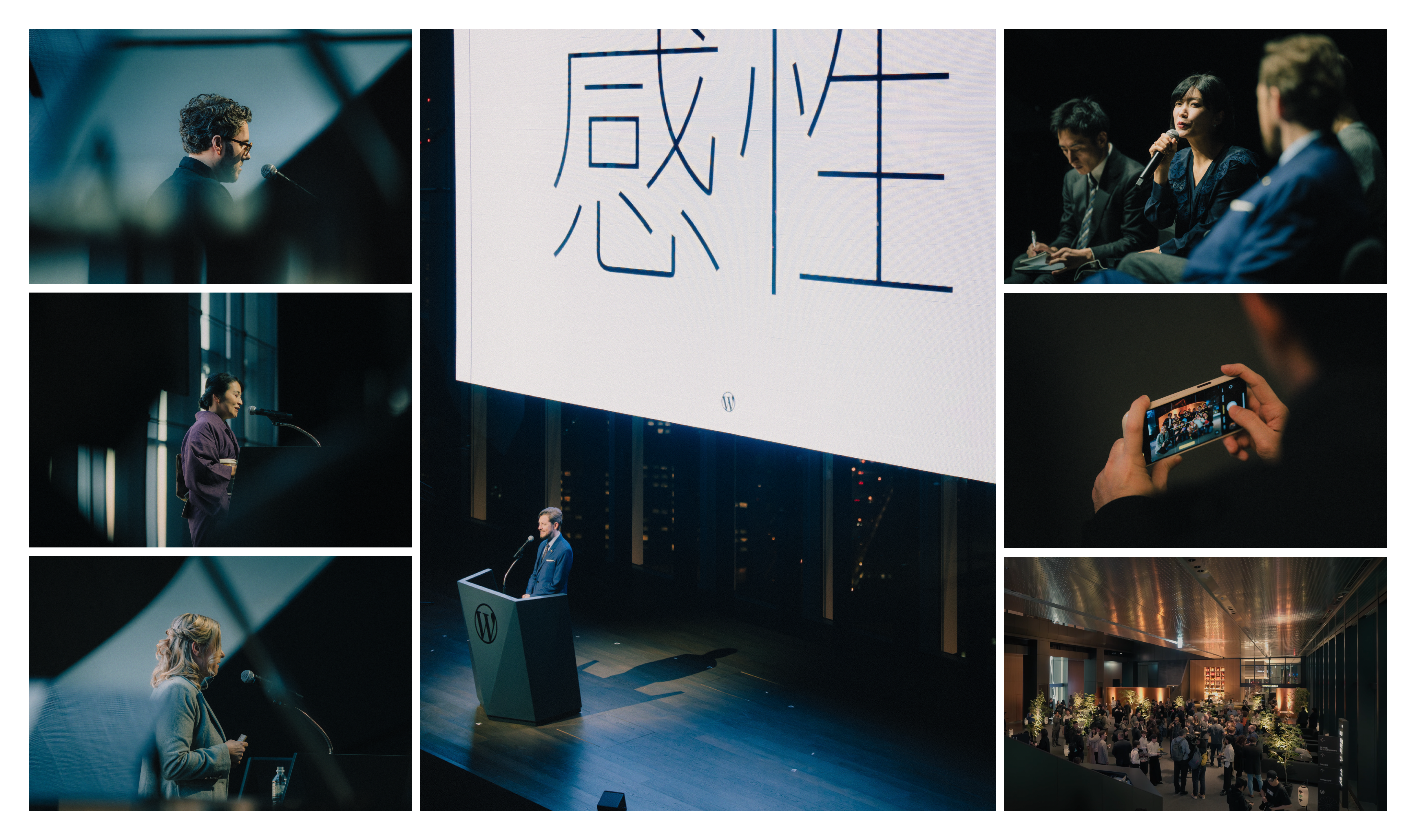 On December 16th, 2024, State of the Word 2024 took place at Tokyo Node in the heart of Japan’s capital city. Its striking architecture, with sleek lines and sophisticated spaces, created the perfect backdrop for an event that balanced tradition with innovation. Oh, and that was our vision for the art direction around the event.