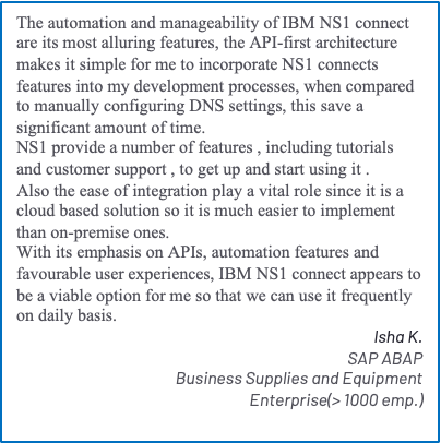IBM NS1 Connect stands at the forefront, helping businesses that rely upon web / app performance to drive revenue by overcoming the challenges of hosting and traffic management. It improves resilience and enhances app / web performance to ensure company’s end-users are always able to reliably connect to key websites and applications