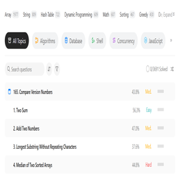| 0207 | Course Schedule | Medium | Top_100_Liked_Questions, Top_Interview_Questions, Depth_First_Search, Breadth_First_Search, Graph, Topological_Sort, Big_O_Time_O(N)_Space_O(N) | 25 | 89.29 |