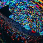 A light and flowing “mercy” presented the Sphere with a unique perspective on the ocean, placing a downward-facing, birds-eye view above the audience’s heads as pastel birds flew underneath us overhead (you gotta look up to look down). For the “Bathtub Gin” that followed, the ocean view remained and a battalion of leisurely swimmers on assorted pool floats appeared all around the dome (we do love to take a bath), then morphed into spinning flower petals of rainbow color as the band ramped up to a thrilling peak. “Theme From The Bottom” took us from the ocean’s surface to its mysterious depths as we plunged deeper into a vivid underwater scene—complete with “schools” of Sims-like people swimming across our field of vision and a late cameo from the Earth Day 2022 whale.