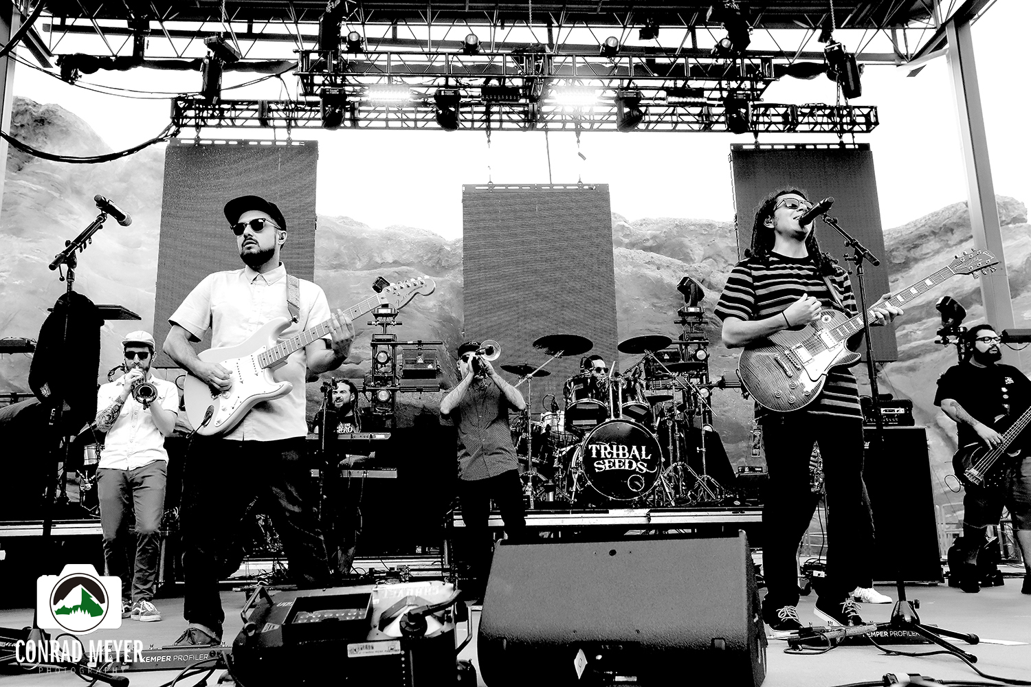 HIRIE graced the stage at 6:30 p.m., performing 30-minutes of joyful reggae pop to the increasing crowd. The seven-piece irie pop group left the crowd in high spirits as reggae-roots group Tribal Seeds took the stage at 7:15 p.m. The early signs of the sunset paired perfectly with the reggae-roots sextet’s refreshing rock melodies over the venue’s mountainous rocks.