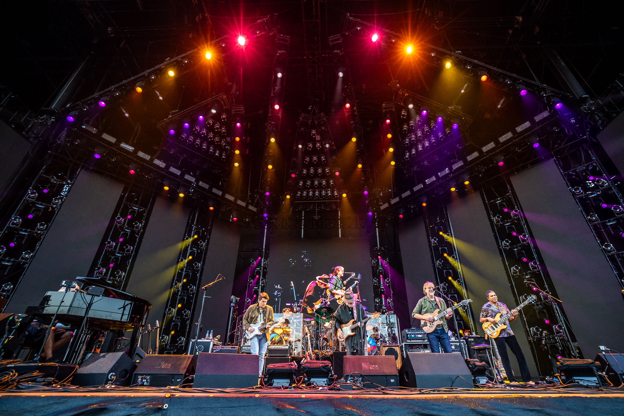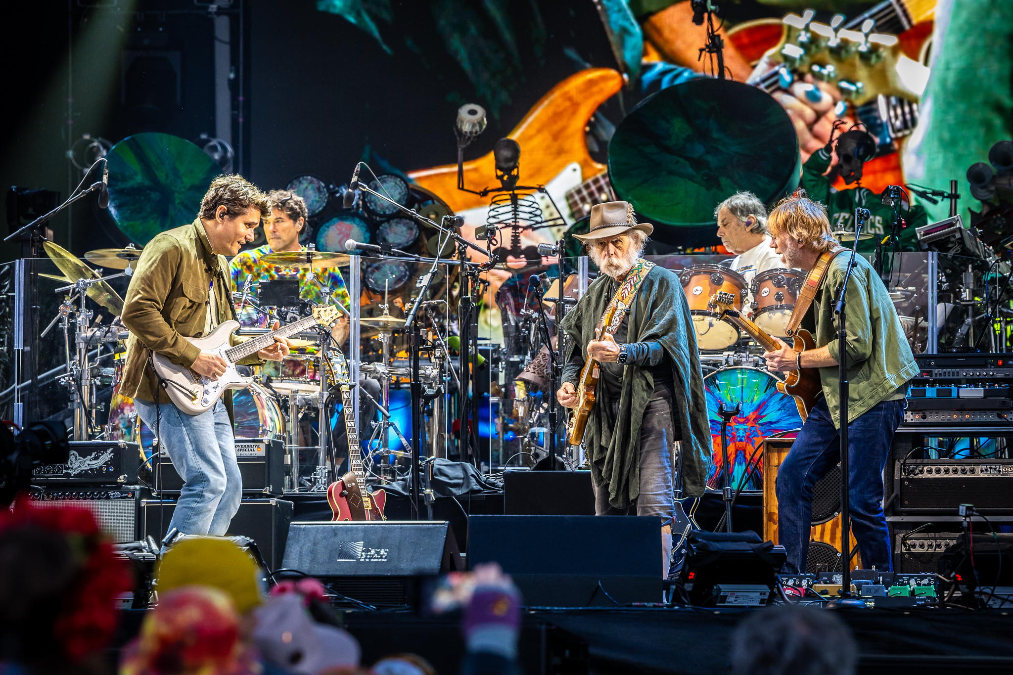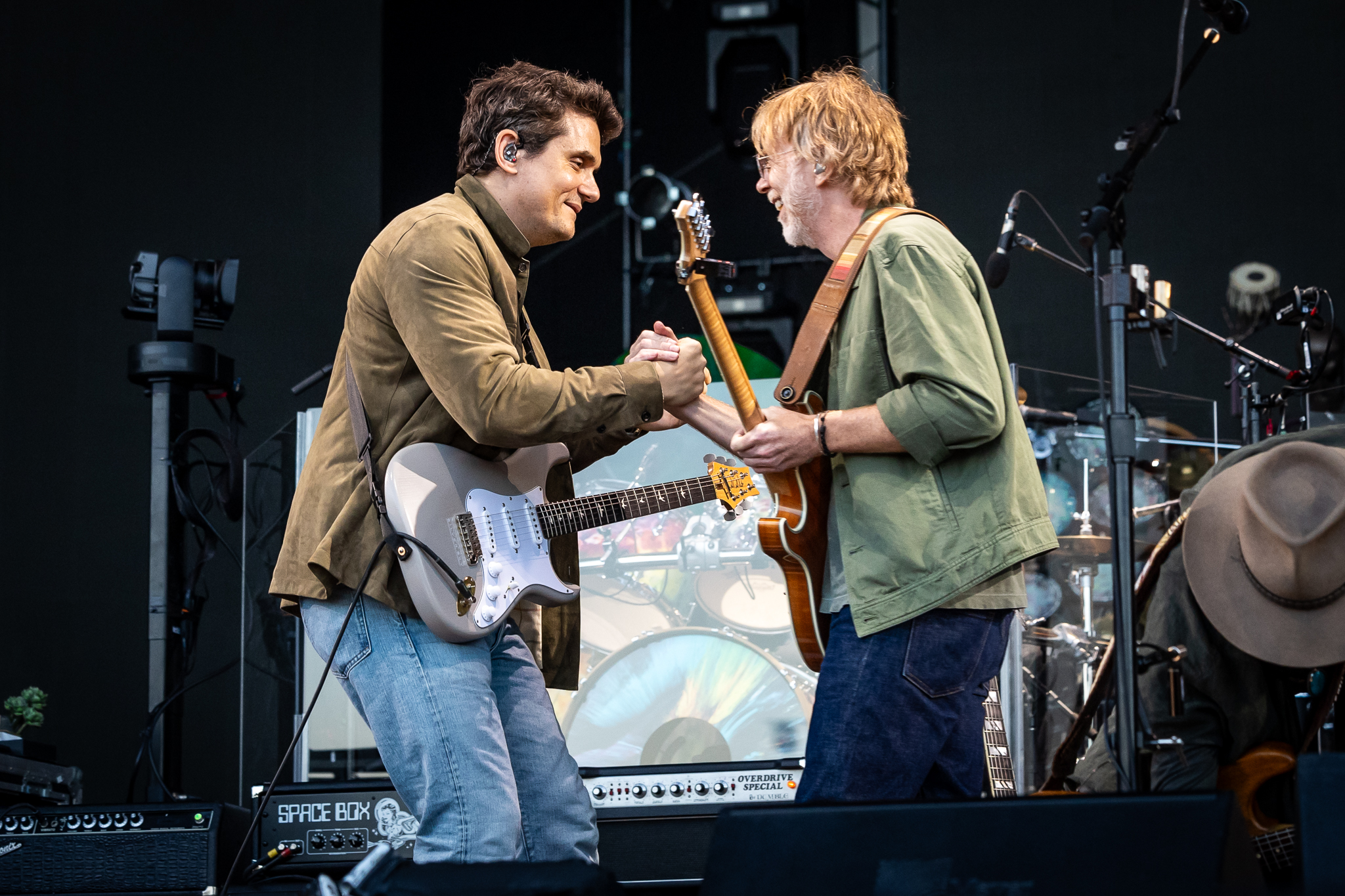 At the start of set two, John Mayer welcomed Trey back to the stage to sit in on “Scarlet” > “Fire”. The two guitarists locked into a spirited exchange, with Weir weaving seamlessly through their improvised dialogue. They passed the mic around during “Fire on the Mountain”, so to speak, as Oteil Burbridge, Weir, and Trey each took a verse before Mickey delivered his iconic rap.