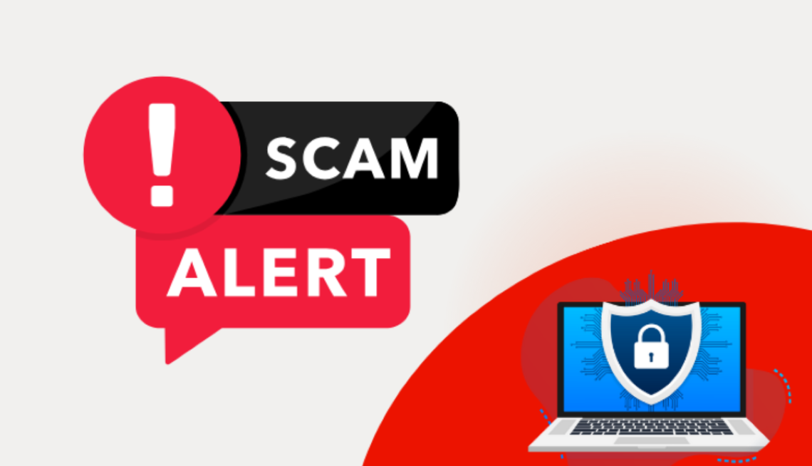 Ilustration of a browser window with a exlamation mark icon and the AARP icon