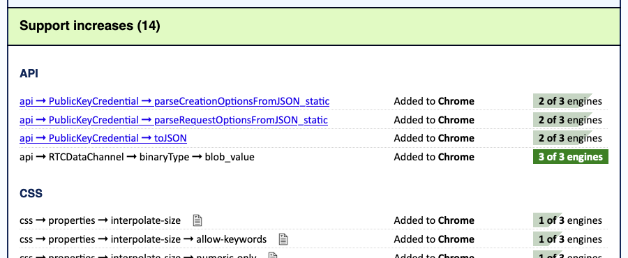 Note that by “came true”, I mean “reached at least Baseline Newly Available”, not “reached Baseline Universal”; that latter status comes over time. And more :has() isn’t really a feature you can track, but I do see more people sharing cool :has() tricks and techniques these days, so I’ll take that as a positive signal.