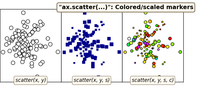 # We've briefly mentioned `ax.plot(x, y)` and `ax.scatter(x, y)` to draw lines and points, respectively. We'll cover some of their options (markers, colors, linestyles, etc) in the next section. Let's move on to a couple of other common plot types.