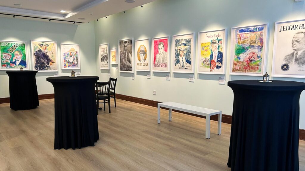 Step into The Starlight Plaza, The Mob Museum’s vibrant outdoor oasis inspired by the Golden Age of Las Vegas. This 7,700-square-foot space, neighboring the Museum’s historic building, is an enchanting daytime space to relax with a cocktail or mocktail while escaping the bustle of downtown. As the sun sets, The Starlight Plaza comes to life as an illuminated homage to midcentury modern Las Vegas glamour. Guests lounge under the iconic Vegas sky, surrounded by works from local artist SNIPT, depicting notorious and famed figures who transformed this railroad town into the Entertainment Capital of the World.