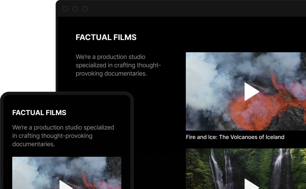 Our immersive and clean player is designed to put your content in the spotlight. No ads, no logos — only your best ideas on the screen.