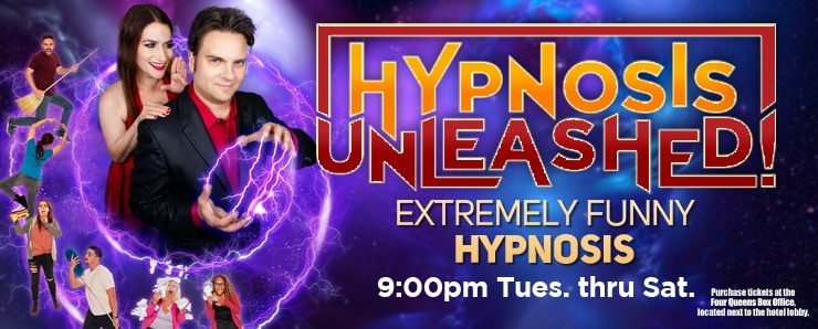 Be sure to see the award-winning hypnotist Kevin Lepine, who takes audiences on an unforgettable comedy thrill ride in his show Hypnosis Unleashed—located at the Four Queens, inside The Canyon Club. Show times are Tuesday – Saturday at 9:00 p.m. for audiences aged 18 or older.