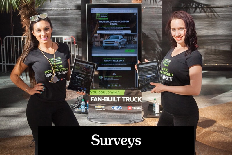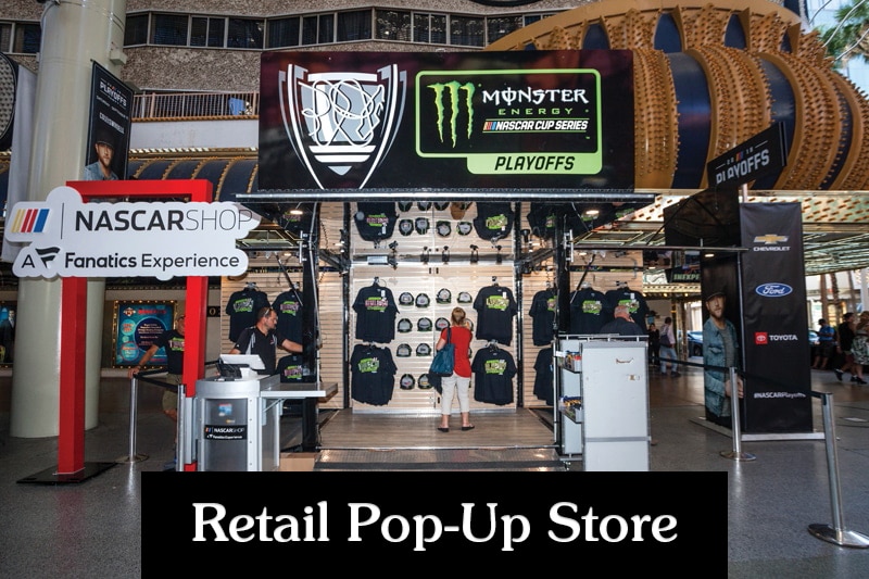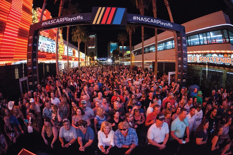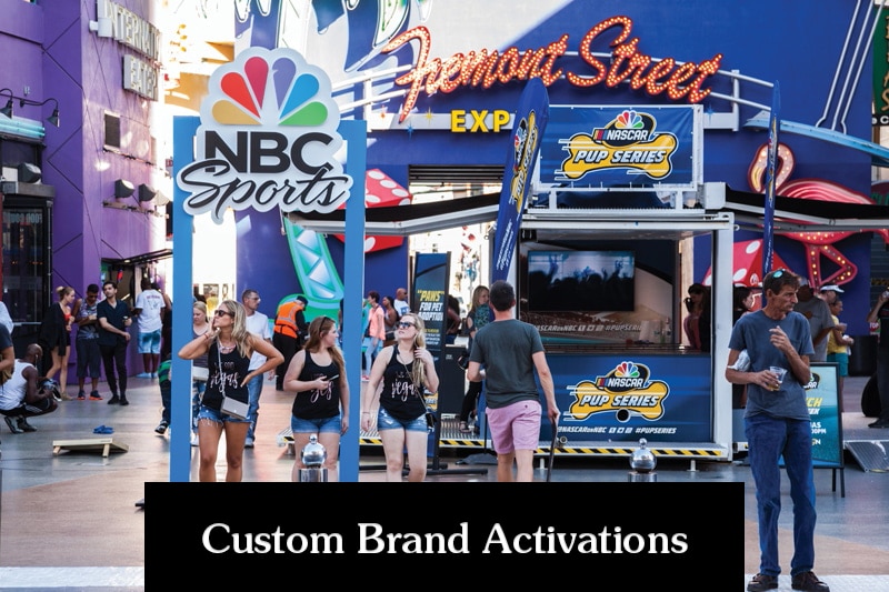 Example = “NASCAR Playoffs Party” activation featured branding, sampling, surveys, product placement, stunts, custom graphics, retail, product giveaways, stage shout-outs, sponsor interviews, autograph signings, bar buyouts, photo stations, digital and social advertising (on-site), data capture and a free concert (see video below)