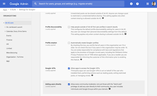 disable discoverability of Google+ profiles outside your domain. Both of these actions can help you control access to critical business information.