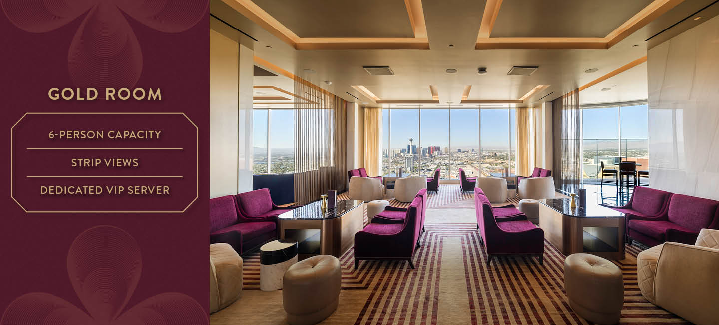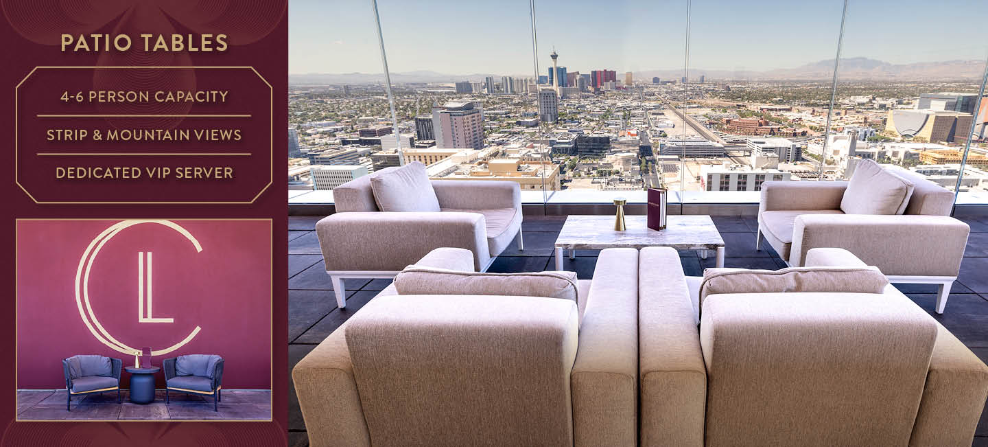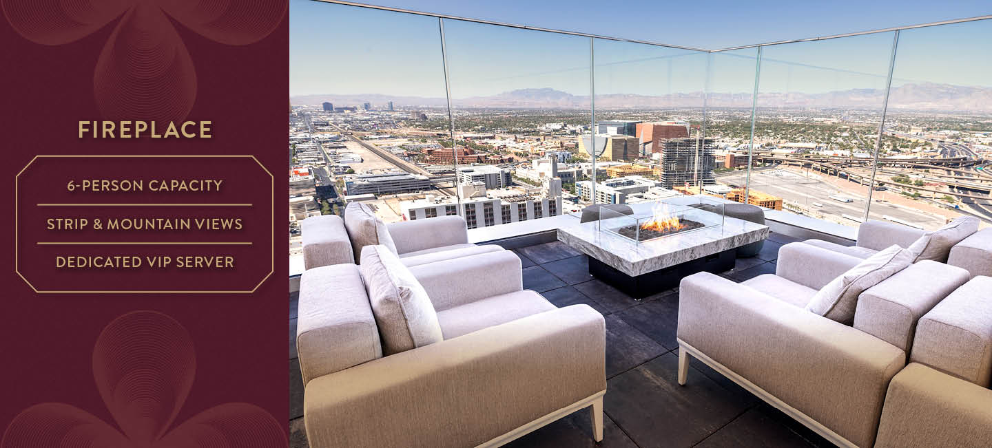 Take in a panoramic view of the Las Vegas valley from a reserved area, featuring a stunning sunset backdrop, handcrafted cocktails, and a champagne toast as the sun goes down.