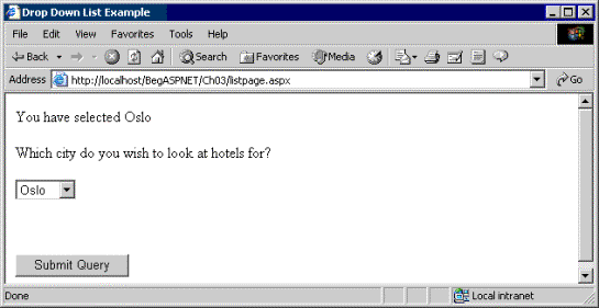 Before we move on to the <asp:dropdownlist> control, let's pause to look at the HTML form control equivalent.
