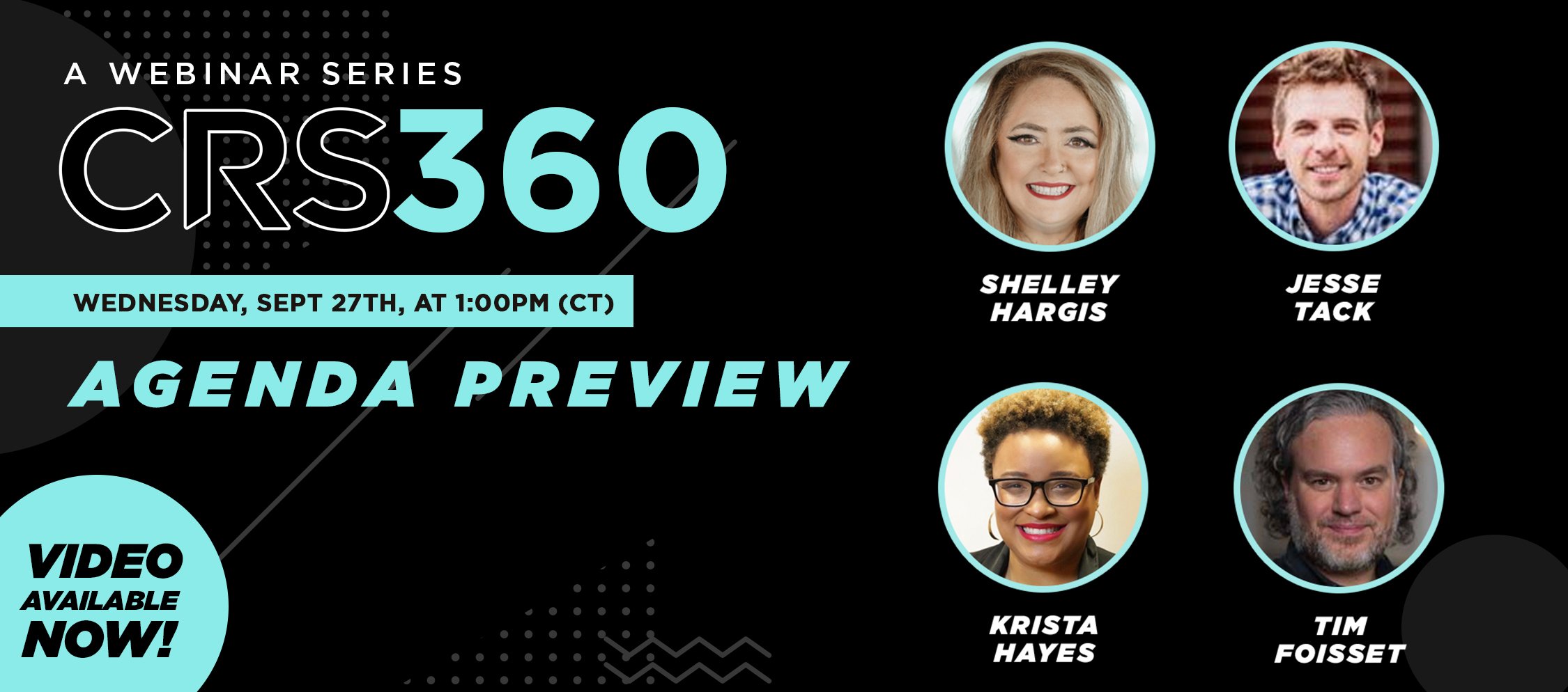 Featuring panelists Joey Tack (CRS ’23 Agenda Chair), Brent Michaels (CRS 2023 Agenda Vice Chair and CRB Board Member), Warner Music Nashville’s Tim Foisset, and Big Machine Records GM Clay Hunnicutt, along with moderator and CRB Executive Director RJ Curtis, CRS ’23: A Preview will focus on what CRS 2023 attendees can expect from the upcoming 3-day event. The agenda committee, CRS staff, and special surprise guests will share information about sessions, panels, and CRS events. The CRS360 discussion and reveal comes one day ahead of CRS 2023 Early Bird registration opening.