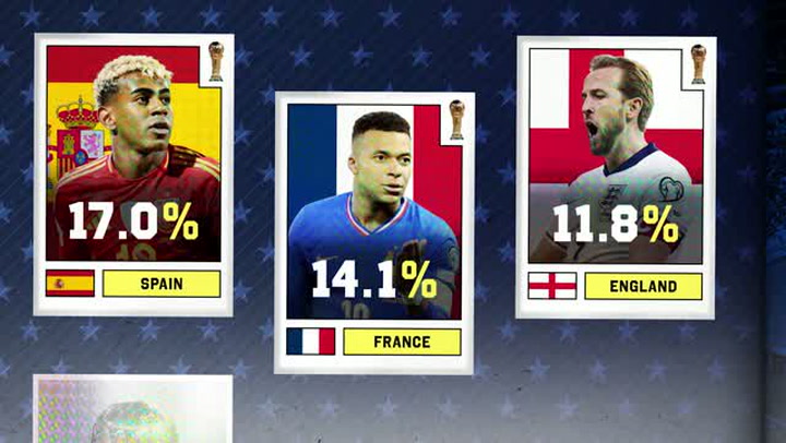 Bombo 1 — España (1), Argentina (2), Francia (3), Inglaterra (4), Brasil (5), Portugal (6), Países Bajos (7), Bélgica (8), Alemania (9), Estados Unidos (14), México (15), Canadá (27).