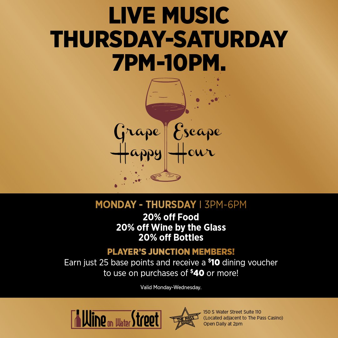 Welcome to Wine on Water Street, where every glass is a celebration of fine flavors and good company. Come unwind, indulge, and discover your new favorite wine bar in the heart of Henderson. Cheers to a new favorite spot!