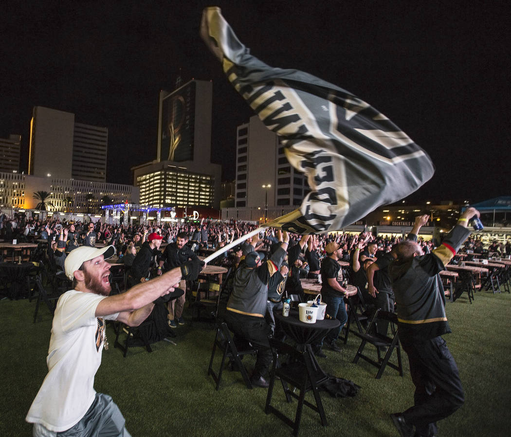 Golden Knights fans watch win from downtown Las Vegas — PHOTOS
