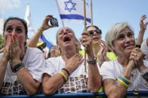 Las Vegas Valley residents gathered at Cafe Landwer in Las Vegas to celebrate the signing of a Mideast peace treaty and the release of Israeli hostages.