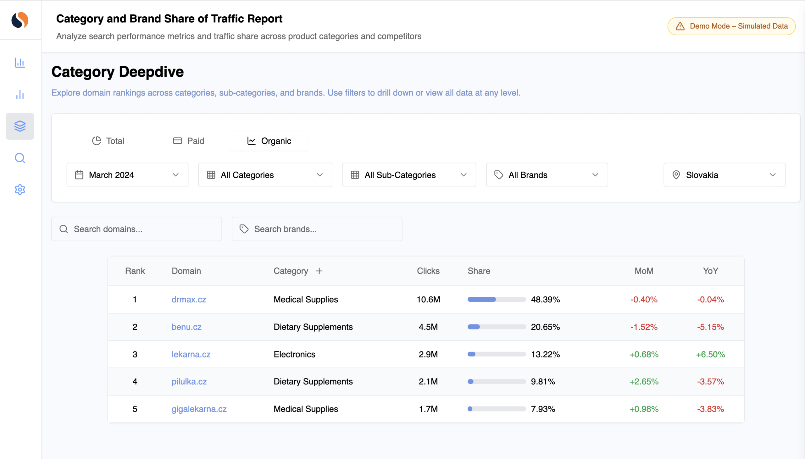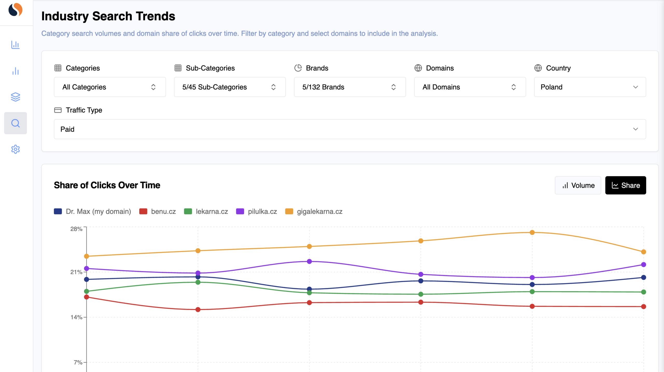 Yes. You can monitor trends like share of search, product page views, and pricing elasticity across multiple reporting cycles for actionable category insight analysis.