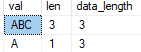 DATALENGTH(val) data_length