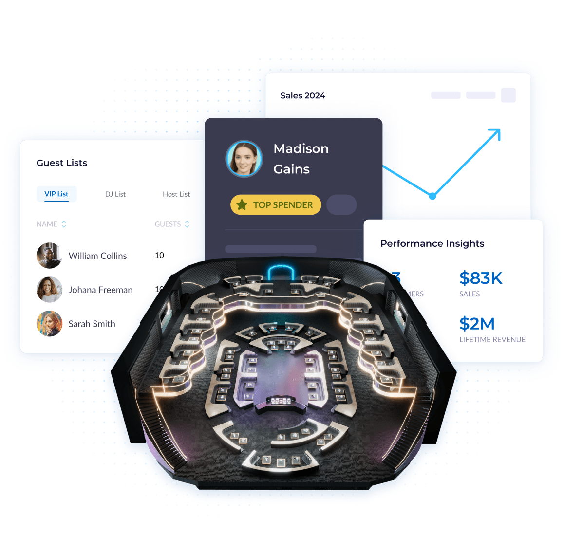Unify booking, operations management, commerce, distribution and business services with our all-encompassing venue management platform, designed to optimize every touchpoint in the hospitality journey across individual venues, nightclubs, bars, lounges and more.
