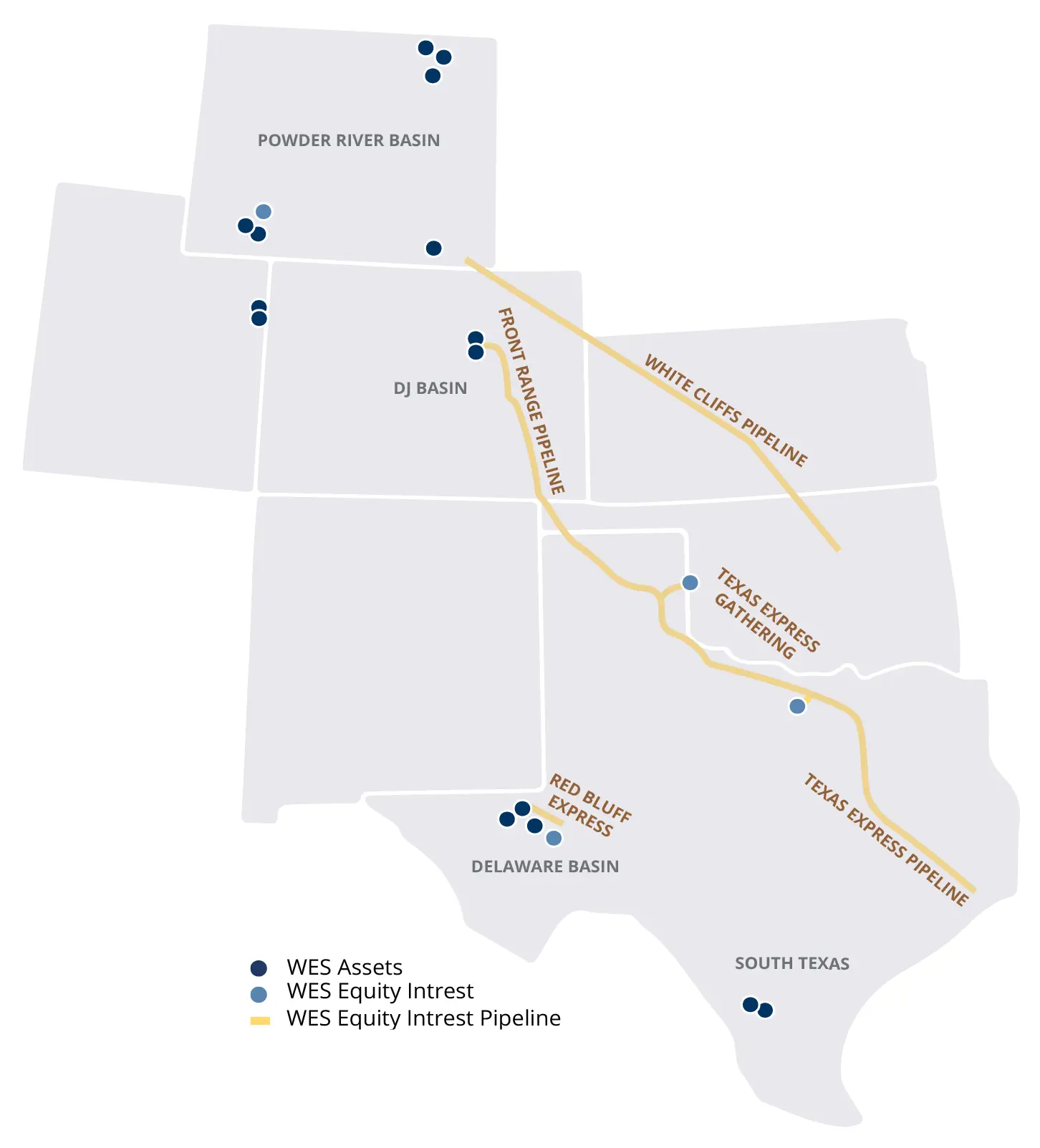 Our core assets provide midstream services for customers in two of the most active and productive basins in the United States – the Delaware Basin in West Texas and New Mexico and the DJ Basin in northeastern Colorado. Our presence in these prolific basins provide us the opportunity to expand and attract additional volumes to our systems. Additional assets and investments in our portfolio are located in South Texas, Utah, and Wyoming.